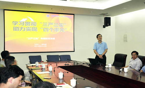 根据中央关于开展“三严三实”专题教育的统一部署,上海有机所积极贯彻落实中科院党组《关于在全院处级以上领导干部中开展“三严三实”专题教育实施方案》,6月23日下午,党委副书记(主持工作)胡金波为党员干部讲授“三严三实”专题党课。所领导、两委委员、研究室主任、部门负责人、支部书记参加学习。