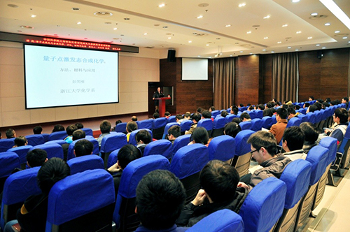12月29日,浙江大学彭笑刚教授应邀到上海有机所进行学术访问,并在君谋楼报告厅做了主题为“量子点激发态合成化学:方法、材料与应用”的交叉学科讲座。上海有机所所长丁奎岭院士主持了讲座,并为彭笑刚教授颁发“上海有机所交叉学科讲座”证书。所内一百余名科研人员和学生参加了此次学术活动。