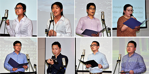 比赛阶段,自各研究室(部门)的22组选手带着饱满的热情,真挚的感情,或跌宕起伏、或激情豪迈、或温婉动情,诵读了《致大海》、When you are old、《放飞中国梦》、《教我如何不想她》、《我是一个任性的孩子》、You have only one 、《前赤壁赋》等耳熟能详的经典诗歌散文作品,“胸藏文墨虚若骨,腹有诗书气自华”,一首首经典朗诵,带给大家视听享受的同时,也传递着积极向上的文学力量。