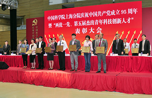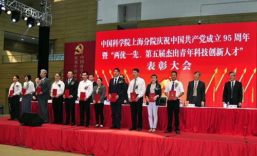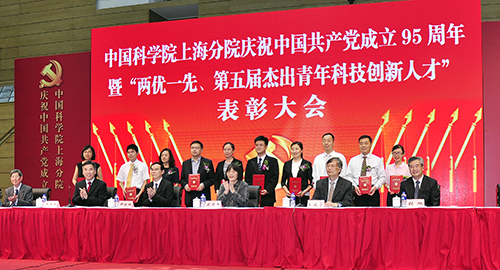 6月13日,中科院上海分院庆祝中国共产党成立95周年暨“两优一先”、“第五届杰出青年科技创新人才”表彰大会在上海科技大学举行。上海有机所金属有机化学国家重点实验室党支部获“中科院上海分院先进基层党组织”称号,丁奎岭、张新刚同志获得“中科院上海分院优秀共产党员”称号,蒋咏文同志获“中科院上海分院优秀党务工作者”称号。