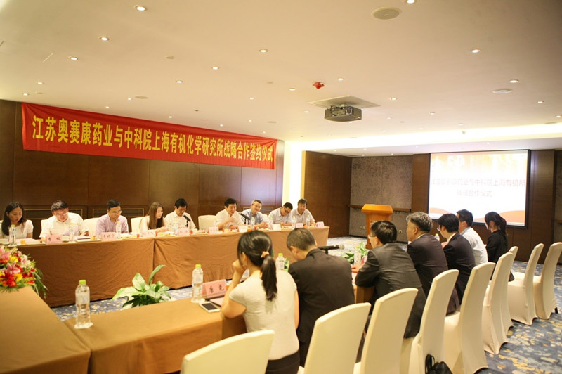 7月19日,中国科学院上海有机化学研究所与江苏奥赛康药业股份有限公司战略合作签约仪式在江苏南京举行,会议由江苏奥赛康药业股份有限公司副董事长赵俊主持。