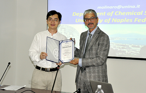 Antonio Molinaro教授是国际知名的糖化学家,主要研究含糖化合物的分离结构鉴定和生理研究,在国际享受很高的声誉。尤其在植物免疫领域,其团队进行了大量的工作,对LPS等糖缀化合物在病原体入侵过程的重要作用做出了详细阐述。Molinaro教授已经在国际期刊上发表文章近200篇,担任多个国际期刊的编委,还在多个与糖缀合物结构功能研究相关的组织中担任职务。Molinaro教授曾于2011到2013年出任欧洲碳水化合物学会会长,并担任2011年欧洲碳水化合物大会主席。目前, Molinaro教授担任一个横跨欧洲18个国家和35个研究组的国际合作项目(Microbial cell surface determinants of virulence as targets for new therapeutics in Cystic Fibrosis)的主席。