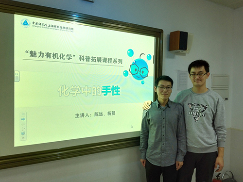 10月25日下午,中国科学院上海有机化学研究所“魅力有机化学”科普拓展课程第三课在南洋中学顺利开展。这次课程的内容是《化学中的手性》,由来自生命有机化学国家重点实验室汤文军课题组的科普志愿者陈远和杨贺讲授。