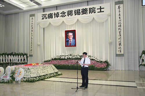 中国科学院上海有机化学研究所所长、蒋锡夔先生治丧委员会主任丁奎岭院士在告别仪式介绍蒋锡夔先生生平。