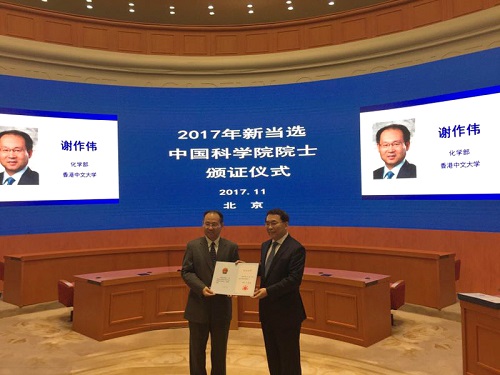 11月28日,中国科学院发布了《关于公布2017年中国科学院院士增选当选院士名单的公告》,香港中文大学、中国科学院上海有机化学研究所沪港化学合成联合实验室谢作伟教授当选为中国科学院院士。2017年中国科学院选举产生了61名中国科学院院士和16名中国科学院外籍院士,其中化学部今年增补了9名院士。