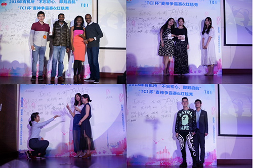4月13日,上海有机所“2018年‘不忘初心,即刻启航’TCI杯麦神争霸赛&红毯秀”活动于君谋楼报告厅举行。有机所副所长马大为、研究生部主任王娟、研究生部老师们以及TCI公司丁慧女士作为嘉宾与有机所学生、职工欢聚一堂,共同欣赏了这场高潮迭起、精彩纷呈的比赛。本次大赛特邀团委书记林芳,原乐队主唱杨侠,往届歌手赛冠军章云帆,专业歌手、资深评委陈祎凡,研究生部武慧慧一起评出本届歌手赛的麦神选手。