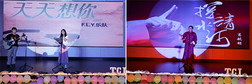 此外,由有机所职工组建的F.L.Y.乐队演唱了《天天想你》和《不再犹豫》两首歌曲,他们代表广大职工为新生献上了诚挚的祝福。麦神冠军得主葛航铭演唱了北京小调《探清水河》,他凭借高超的演唱水准与劲健婉转的歌声获得了经久不息的掌声。在节目表演中穿插进行的游戏互动环节“你比我猜”“抢凳子”“芳环连蹲”以及抽奖环节更是一次次将现场欢乐热烈的氛围渲染的更为高涨。
