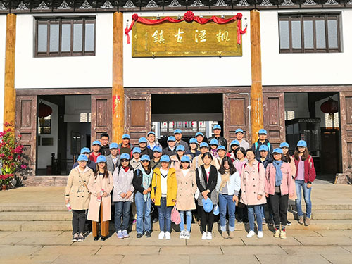 枫泾廊下古镇游路线中,职工们来到枫泾古镇,古镇位于上海市西南角,是典型的江南水乡,素有“三步两座桥,一望十条港”之称;枫泾文化底蕴深厚、自然风景优美,小桥流水、青砖黛瓦。大家从古镇南边的主入口进,走到南大街,沿着河慢慢逛古镇,先后参观了“金圃宅第”枫泾历史文化陈列馆、枫溪古色古香的长廊、程十发祖居、上海地区保存最完整的人民公社旧址、全国规模最大的毛泽东像章馆和当代最负盛名的漫画家丁聪漫画陈列馆等。