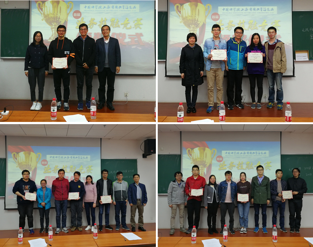 最后,胡金波对本届业务技能竞赛进行了总结发言,他对竞赛组委会、全体评委的辛勤工作表示衷心感谢,对参赛选手取得的好成绩表示衷心祝贺!他指出,研究所举办业务技能竞赛是响应党的群团工作意见的具体举措,此次竞赛活动紧密围绕研究所科技创新中心工作,开展的竞赛项目非常贴合本所科研人员工作需求,活动举办的非常成功;他希望,通过此类活动的牵引,激发广大职工和学生的技能学习热情,为提升有机所人的业务能力和团队协作能力做出贡献;他要求,通过技能竞赛,要奖励先进、树立榜样,在所内营造创先争优的浓厚氛围,从而为我所“一三五”规划实现及“分子合成科学卓越创新中心” 顺利建设提供助力。至此,首届业务技能竞赛活动圆满结束。