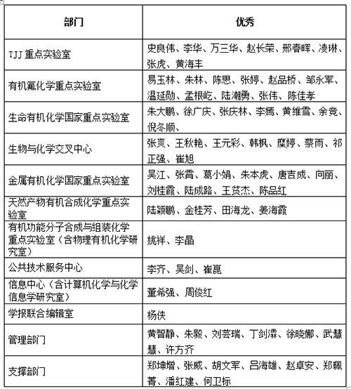 根据中国科学院上海有机化学研究所职工年度考核办法规定,经部门考核推荐,所务会议讨论决定,现对下列优秀职工予以通报表彰: