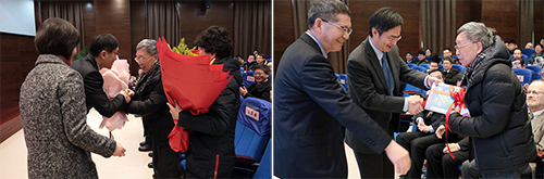 在热烈的掌声中,陈先生上台致谢,他简要回顾了自己70年来的人生、科研历程。作为一个农民的孩子,凭借机遇和努力到今天,他谦虚地称自己只是我国氟化学工作者中普通的一员,或者说是一个老兵。祖国的哺育和党的培养,为生在旧社会,长在新中国的陈先生提供了良好的学习和研究条件。小学、中学,特别是北京大学的曾昭伦、邢其毅、唐敖庆、徐光宪、蒋明谦等先生的基础和开拓式的培养令他受益永久;留学苏联导师Knunyants院士和Gambaryan博士给予的指导和鞭策,他永记心中。回国后近60年的科研生涯,与有机所的黄耀曾、黄维垣、蒋锡夔等一百多位同仁与研究生一起攻坚克难,共同学习进步,取得成绩和荣誉都应该属于有机所这个伟大的集体。“有机所永远是我的家,这是我生活的几十年里最大的体会,也是我幸福的源泉”。他祝愿有机所这个伟大集体更加繁荣昌盛,取得更优异的成绩。