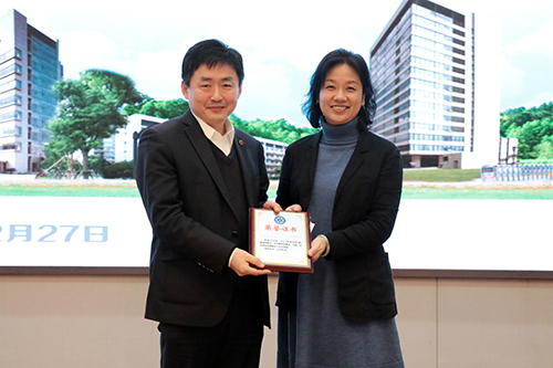 为丁奎岭同志颁发杰出贡献荣誉证书