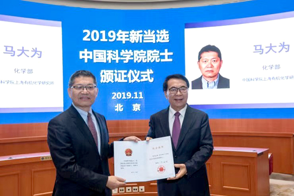 11月22日,中国科学院发布了《关于公布2019年中国科学院院士增选当选院士名单的公告》,上海有机所马大为研究员当选为中国科学院院士(化学部)。