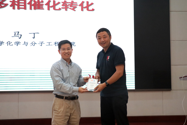 马丁介绍了费托合成的基本原理及其在煤/天然气转化为液态燃料上的重要应用价值;针对铁基费托合成反应以及合成气制备烯烃的Fe系催化剂的设计和可控制备,阐述了ZnO和少量Na对Fe5C2催化剂的几何结构、电子结构的调控及其对反应路径的调控作用。同时,马丁还对催化剂的制备、表征、反应条件、量子化学在催化剂结构及性能上的研究等方面进行了详细讲述。马丁的报告聚焦学术前沿、内容丰富、精彩生动,展示了多相催化手段在能源催化中的魅力,为从事相关研究的科研人员提供了非常有价值的参考。