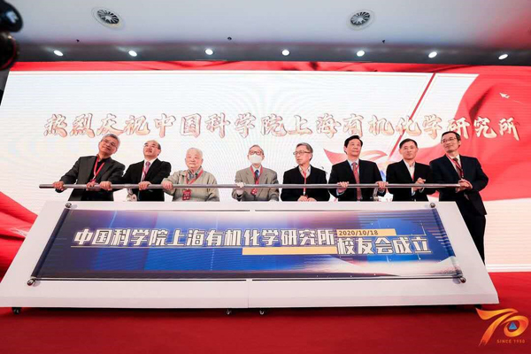 在建所70周年的喜庆日子,有机所校友会正式揭牌。中国科学院大学校友会办公室刘红雨主任宣布中国科学院大学校友会办公室关于同意成立中国科学院上海有机化学研究所校友会的批复。国科大校友会秘书长马石庄教授,李正华书记,我所陆熙炎院士、戴立信院士、陈庆云院士、林国强院士和唐勇所长、胡金波书记,共同为校友会成立揭牌。马石庄秘书长致辞。校友会成立环节由上海有机所副所长刘文主持。