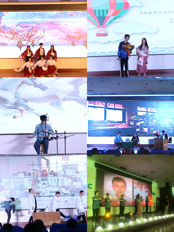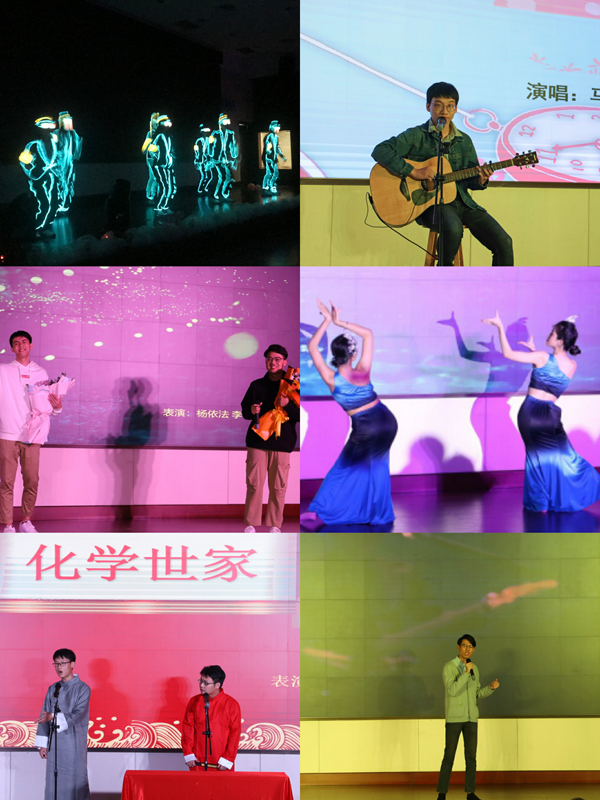 迎新晚会在动感炫酷的《荧光舞》中正式拉开帷幕,黑暗中荧光勾勒的动人舞姿,伴随着搞怪逗趣的音乐,吸引了现场观众跟着一起舞动。新生们以二人对唱的形式演唱了歌曲《童话》、《你被我写在歌里》,情绪饱满,余音绕梁;单人独唱《wherever you are》,深情款款,回味无穷。古风团舞《寄明月》,将古典意境的曲风和青春活力的舞蹈巧妙结合,完美契合了新生代多元、创新的特性。孔雀舞《月亮》更是将本场晚会推向高潮,空灵婉转的乐声中,舞姿曼妙,生动展现了民族舞特有的灵动与柔美。高年级师兄们的表演方式更是层出不穷,吉他弹唱的《迟到千年》,传达了离别之际,同学前程似锦、一路顺风的美好祝愿;二胡独奏《战马奔腾》,旋律激昂,肃杀之气油然而生。歌舞传唱间还穿插有相声、话剧及小品等语言类节目,高潮迭起。融合专业背景知识的相声《化学世家》,通过幽默诙谐的对话方式让大家认识了“硫”氏家族的众多成员;抗疫情景剧《早春咖啡馆》,以李国庆医生的感人事迹为切入点,向所有在疫情期间无私奉献的无名英雄致以崇高的敬意。小品《属于你的答案》,讲述了小师妹从初入有机所时的懵懂无知,到做实验时的不知所措,终于在师兄们地悉心指导下独立自强的心路历程,暗含在场的每一位小萌新都能成长为独挡一面师兄师姐。最后,由研究生会带来的手势舞《你笑起来真好看》和《听我说谢谢你》,伴随着“谢谢你,感谢有你”的歌声,迎新晚会迎来了尾声,歌声和动作饱含对有机所默默奉献的老师、职工以及同学们的真诚谢意。