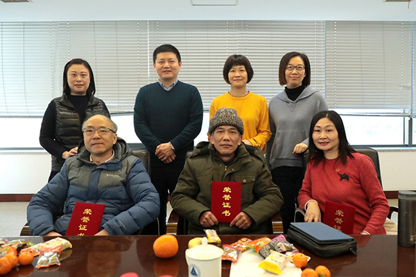 随后,刘菲、陆海峰、蒋咏文一起为三位老师颁发了荣誉证书,赠送了纪念品。“不忘初心,方得始终”,让我们向光荣退休的老师表达最真挚的敬意,牢记优良传统,接续奋斗,不负韶华。
