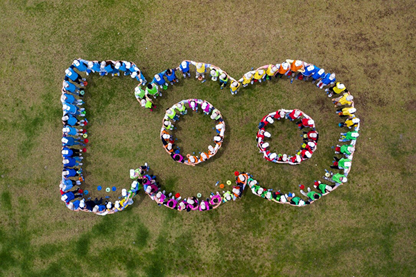 暴雨后的蓝天分外晴朗,明媚耀眼的阳光透着五月的生机盎然。 活动在破冰仪式中拉开序幕,通过趣味小游戏的互动和分组协作的沟通,大家很快相互认识,彼此熟悉,形成了凝聚而富有战斗力的自小组团队。炎热的天气丝毫没有影响大家的热情,青年们挥洒着智慧与汗水,通过默契配合,相互协作完美的呈现数字100,献礼党的百年诞辰。