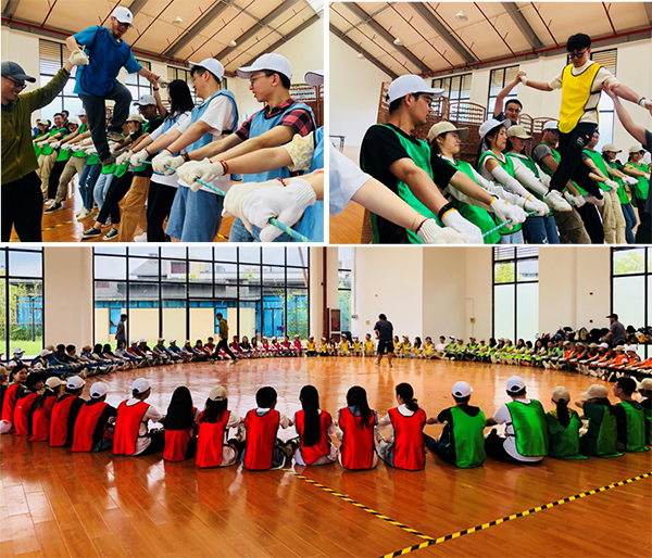 随后迎来的是“群龙取水”、“团队动力圈”两个经典而富有趣味性的项目,既需要体力又需要智力。这两个项目的顺利完成,需要队员们敞开心扉的完全的信任,树立信心,怀揣勇气,体会团队支持,在团队合力合作过程中感受自我超越的可能性。