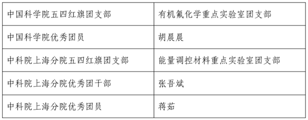 近日,为表彰先进,树立典型,进一步弘扬“五四”精神,共青团组织对青年集体和个人进行了表彰。上海有机所荣获中国科学院、中国科学院上海分院共5项集体和个人表彰,具体奖项如下: