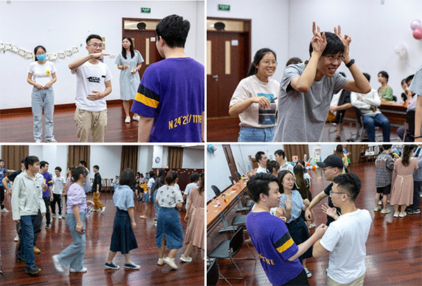 晚上18:00,活动伴随着轻松愉悦的“初来乍到”环节拉开序幕,同学们在三分钟内快速介绍自己,分享自己的兴趣爱好,彼此间进行初步认识。随后的“友谊对对碰”环节,同学们在主持人的口令下,快速找到自己的分组,现场气氛迅速升温,彼此默契得到加强。“心有灵犀”环节最让人瞩目,大家你划我猜,在倒计时中,一次次的比划和猜测,把在场人的心都集中到了一起,夸张的肢体语言伴随着焦急的神态引得现场笑声不断,迅速将全场气氛推向了高潮。在“气球消消乐”环节,各组同学遵守规则,斗智斗勇,欢声笑语再次将气氛推向了高潮。