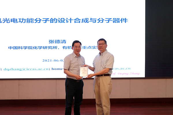 马大为向张德清颁发有机所交叉学科讲座纪念牌