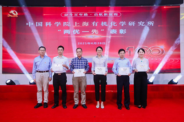 会上,党委副书记(主持工作)游书力宣读了上海有机所“两优一先”表彰决定,并举行了颁奖仪式,为戴立信等11位优秀共产党员、刘国生等5位优秀党务工作者、生命有机党总支等3个先进基层党组织颁发荣誉证书。会议号召要以受表彰的先进集体和个人为榜样,精诚团结、踏实工作、务实求新、勇于奉献,形成学先进、比先进、赶超先进的良好氛围。同时,全体党员要以党史学习教育为契机,全面聚焦主责主业,加强关键核心技术攻关,全力推进研究所“一体两翼”战略布局再上新台阶,为实现高水平国家科技自立自强目标做出新的更大贡献。