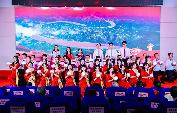 为“光荣在党50年”老党员代表颁发纪念章