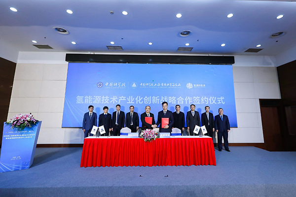 随后,双方代表唐勇和任亚辉正式签署战略合作协议,并在该两位代表人以及出席人的见证下,由胡金波和徐建华为“氢能源膜材料研究中心”揭牌。