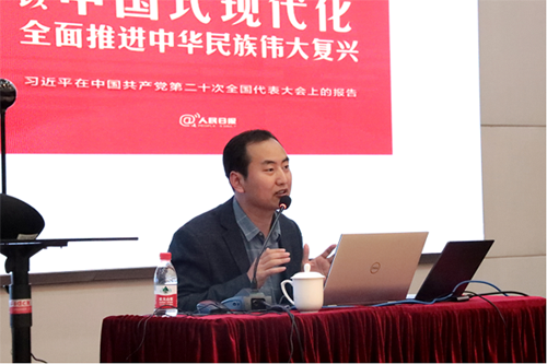 学习会特别邀请上海大学政党治理与社会发展研究中心副主任,上海市习近平新时代中国特色社会主义思想研究基地研究员孙会岩作“认真学习领会党的二十大精神——以中国式现代化全面推进中华民族伟大复兴”辅导报告。报告紧密结合党的二十大会议精神,重点从会议举世瞩目的深远意义、党的二十大报告重要内容以及学深悟透落实党的二十大精神三个方面,运用大量生动案例和详实数据,系统解读了以习近平同志为核心的党中央在“新时代”的重要战略思想。报告思路清晰、案例生动,既有理论高度,又密切联系实际,对研究所党员、职工全面系统领会党的二十大精神起到了十分重要的指导作用。