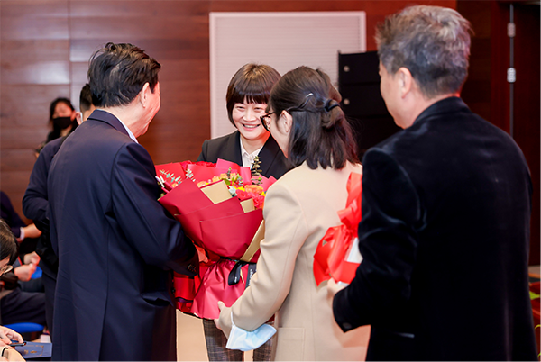 刘菲副所长、石岩森书记向林国强院士献花、赠书