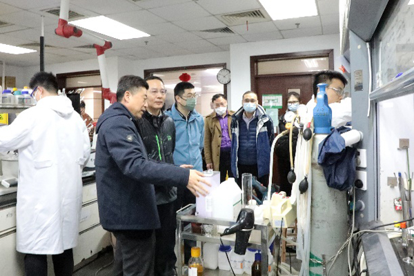 在展示厅,调研组一行参观并听取有机所所史、近年重要科研成果、研究所未来发展等情况介绍。在实验室,现场查看安全管理工作情况,听取有机所为实验室配置试剂架和电源插排隐患专项整改的汇报,实地了解院应急保障项目“危险品仓库整改”的实施情况及应用效果。