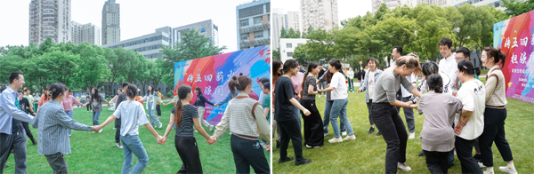 在个人赛环节,大家自愿报名参与简单活泼的“一快五毛”游戏,在主持人口令的指引下,大家纷纷互相组队自觉成圈,现场充满欢笑语,呈现出一派紧张欢乐的气氛,将活动氛围推上高潮。
