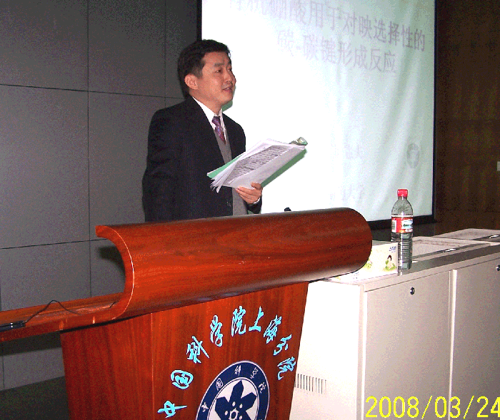 中国催化会议主题聚焦于催化领域,邀请了该领域世界著名的化学家参加,并就催化领域的最新研究进展及前沿探索进行了学术报告。有机所丁奎岭研究员、马大为研究员共同主持了此次会议,美国默克制药公司孙永奎博士和有机所丁奎岭研究员分别致欢迎词和闭幕词。会议共安排了6个邀请报告,包括瑞士ETH的Erick Carreira教授的“Studies in Catalytic Asymmetric Synthesis”, 中科院上海有机化学研究所麻生明院士“Transition Metal-Catalyzed Cyclometallation Involving Allenes”,日本北海道大学Norio Miyaura教授的“Enantioselective C-C Bond Forming Reactions of Organoboronic Acids”,日本九州大学Tsutomu Katsuki教授的“Unique Asymmetric Catalysis of Metal(ONNO) Complexes: Atom-Efficient Oxidation”,南开大学