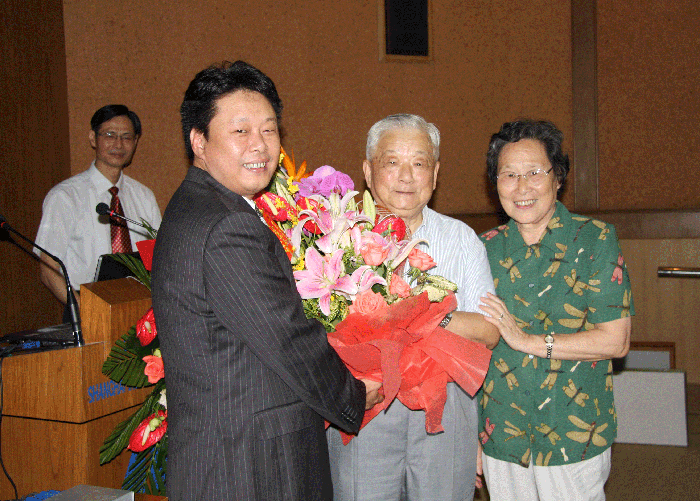 上海有机所所长姜标研究员代表有机所全体员工和研究生恭祝陆熙炎院士生日快乐,并敬献了鲜花和“志庆集”。