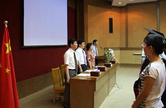 2009年7月10日上午,上海有机所2009届研究生毕业典礼在图书馆楼报告厅隆重举行。党委书记郏静芳、副所长丁奎岭、所学术委员会主任林国强院士、所学术委员会副主任马大为研究员以及研究生导师和2009届全体博士、硕士研究生毕业生及其家长、亲友们参加了毕业典礼。会议由马大为研究员主持。