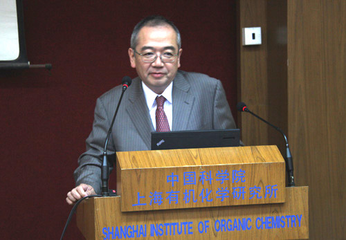 有机所的马大为副所长、施敏、姚祝军、王任小、洪然等研究员及部分职工研究生参加了此次有机化学研讨会。日本有机合成化学学会的Takayuki Doi(土井隆行教授)(Tohoku University )、Katsuhiko Tomooka(友岡克彦教授)(Kyushu University)、 Susumu Kobayashi(小林進教授)(Tokyo University of Science)、Hideo Nagashima(永島英夫教授)(Kyushu University )分别作了题为:“Total Synthesis and Biological Evaluation of Cyclic Depsipeptide Natural Products and Their Analogues: Spiruchostatin A and Largazole”、“Chemistry of Unnatural Chiral Compounds”、“Natural Product Synthesis Based on the Development of New Methodology and New Strategy”、“New Aspects in Metal-catalyzed Reduction of Amides with Hydrosilanes”的学术报告;有机所的王任小研究员、施敏研究员、姚祝军研究员也分别作了题为:“Systematic Derivation of AMBER Force Field Parameters Applicable to Zinc”、“Chiral NHC-Metal Complexes and Their Asymmetric Catalyses”、“Total Syntheses of Camptothecin-Family Alkaloids Using Cascade Multiple-Bond-Formation Methodology”的学术报告。