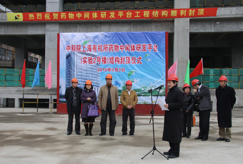 有机所药物中间体研发平台(综合实验2号楼)自2009年3月31日开工以来,各项工作进展顺利,质量、安全、进度、文明施工等各个方面,都取得了较好的效果,为此丁奎岭所长对上海第一建筑公司的领导、现场指挥人员及全体建设者,对他们的敬业精神和高度负责的工作态度,以及辛勤付出再次表示了衷心地感谢!