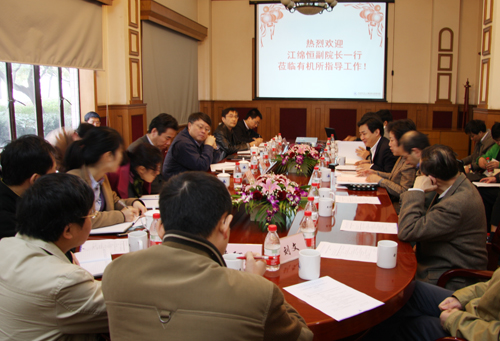 11月25日,中国科学院副院长江绵恒在上海分院党组书记、副院长王建宇、上海分院常务副院长朱志远陪同下到上海有机化学研究所考察调研。上海有机所领导班子成员、部分院士、研究室负责人、管理部门负责人、部分科研骨干30多人参加了会议。