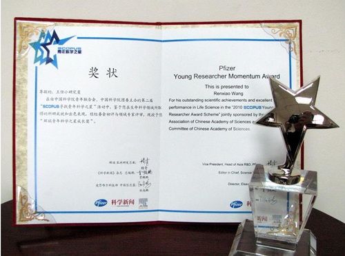 2010年12月15日,第二届“SCOPUS寻找青年科学之星”颁奖典礼在中国科学院国家科学图书馆隆重举行。该奖项本年度授予环境科学、生命科学、信息科学、气候变化科学以及材料科学领域共50名青年科学家。中国科学院上海有机化学研究所王任小研究员入围生命科学领域前三甲,荣获“辉瑞青年科学之星成长奖”。