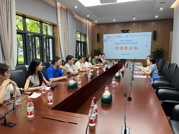 王娟对来访师生表示热烈欢迎,简要介绍了上海有机所研究生培养情况,张国昌介绍了西湖大学理学院的基本情况。双方就博士生发展计划、招生情况、学科建设等进行了交流,并表示要进一步加强沟通合作,互学互鉴。