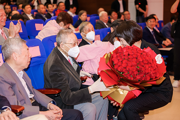 戴立信院士以视频形式致答谢感言。他首先真诚感谢从四面八方乃至海外参加本次活动的各位嘉宾,他动情地说:“一百年许多人、许多事。从未想过自己能一路能幸运走到百岁,一生能战胜那么多劫难、收获这么多友谊……”;其次感谢已去世的妻子和在世的家人和朋友:“是你们一路伴随着我,赋予我精神力量,支持我的工作,丰富我的人生,用坚定的亲情和友情成就了我的家庭和事业……”;最后,他感念人生晴朗安好的幸福,同时祝在座的每一位嘉宾健康长寿,阖家幸福;并祝愿上海有机所在世界化学领域里继续表现出色,勇敢拼搏和创新!