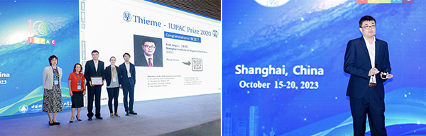 李昂研究员领取Thieme-IUPAC Award有机合成化学奖证书并作大会报告