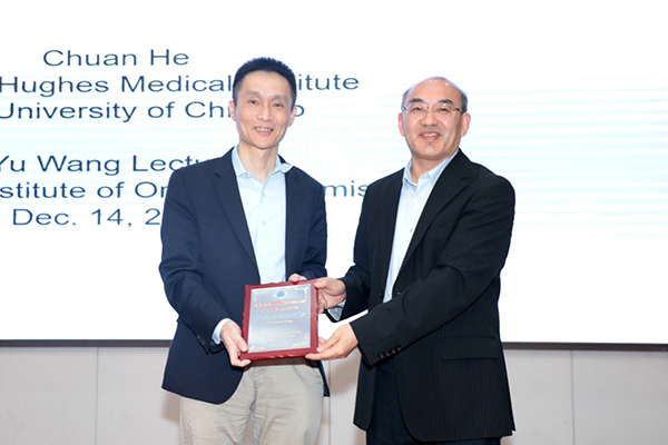 12月14日,美国芝加哥大学何川教授应邀访问上海有机所,在君谋楼报告厅作题为“Nucleic Acid Chemical Biology”的汪猷科学讲座。唐勇院士主持本次讲座,并为何川颁发汪猷科学讲座纪念铜牌。上海有机所以及周边生命科学领域科研院所师生近400人到场听讲,现场座无虚席。