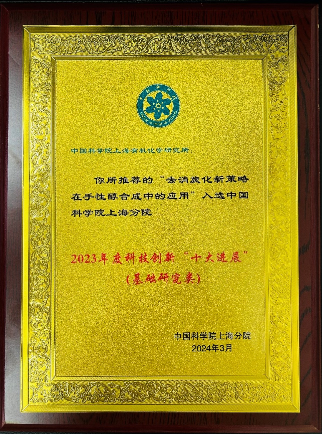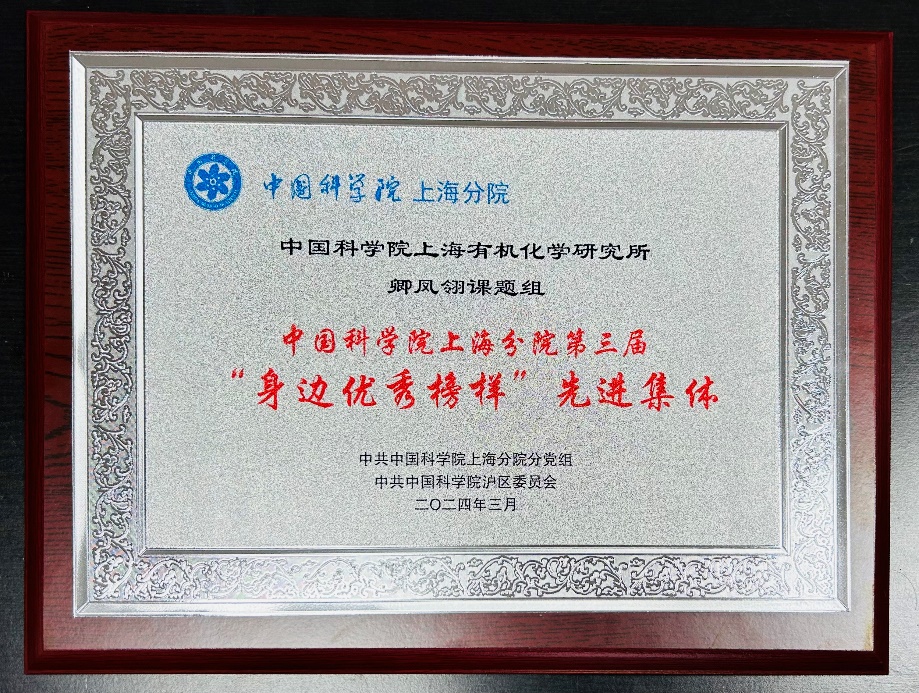 2月29日,中国科学院上海分院召开了2024年度系统研究所工作推进会暨抢占科技制高点重点任务动员会。会上,对上海分院2023年度科技创新“十大进展”、上海分院第三届“身边优秀榜样”先进集体和先进工作者等进行了表彰。上海有机所“耐低温氟醚橡胶创制及应用” 荣获上海分院“技术攻关类”年度“十大进展”、“去消旋化新策略在手性醇合成中的应用” 荣获上海分院“基础研究类”年度“十大进展”、卿凤翎课题组荣获“身边优秀榜样”先进集体称号、左智伟研究员荣获“身边优秀榜样”先进工作者称号。