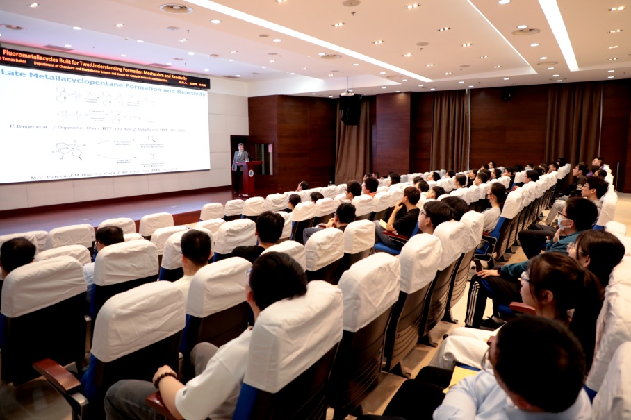 Baker教授的报告主要介绍了含氟有机金属配合物的合成以及转化等相关工作。他的研究团队利用低价态第一周期过渡金属合成含氟环金属配合物,并发现与非氟配合物相比,这类含氟配合物具有独特的反应性质,配体的种类对配合物的化学性质有着重要的影响。Baker教授结合计算化学,对配合物的转化和反应性进行了研究,探索在不同含氟烯烃存在下,金属氟卡宾配合物与其发生反应的相关机制。Baker教授的工作为利用过渡金属对含氟烯烃进行聚合反应的相关研究提供了思路。提问环节中,Baker教授与现场师生进行互动交流,探讨相关科学问题。