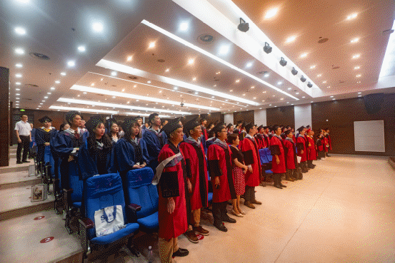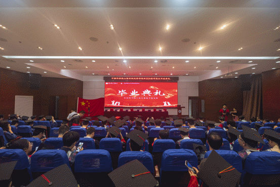 毕业典礼在雄壮的国歌声中拉开帷幕。