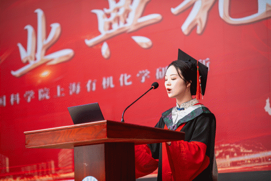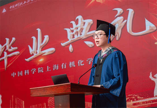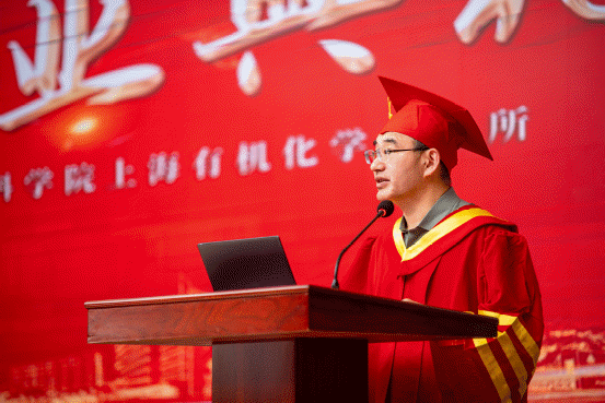 陈以昀研究员作为导师代表表达了对毕业生们的期盼:“毕业前的你们,可以肆意挥洒青春,青涩和懵懂是学生时代成长的一部分。而毕业之后的你们是经过母校认可的硕士或博士,你们将肩负更多的社会责任。你们的一言一行,不仅展现自我形象,也代表母校的荣誉。从这一刻起,你们将凭借数载沉淀的知识与能力,踏上征途,成为值得信赖、独立担当的专业人士。全体有机所人将持续关注你们的成长,为你们的每一步成就喝彩。期待你们永远保持对世界对未知的好奇之心,在未来创造更多的辉煌!”