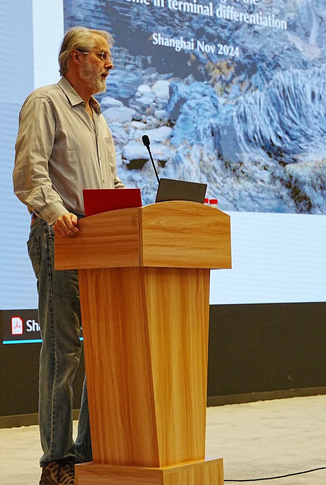 Daniel J. Finley教授的报告重点介绍了课题组在红细胞发育生成过程中大量蛋白质、RNA、以及细胞器逐步清除等方面的最新研究进展。他分享了利用单细胞测序、蛋白质谱等手段研究蛋白质组改变、并成功鉴定出调控红细胞发育过程中关键因子的新方法。另外,还仔细解释了他们发现的新颖泛素连接酶和底物衔接蛋白发挥功能的分子机制以及其与血液性相关疾病的关联。