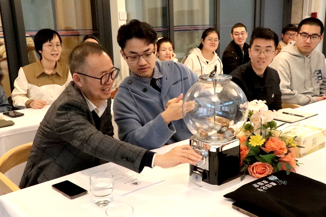 活动伊始,刘文副所长发表致辞,青年人的内敛和羞涩也被“问题盲盒”环节“破冰”。主持人提前在扭蛋机里装了同学们期望与嘉宾对话的问题,随着周院士扭动开关,第一个幸运问题“破壳而出”!这个特别的开场瞬间让场内气氛变得和谐、无界限,在座的同学和老师不禁打开了话匣子。